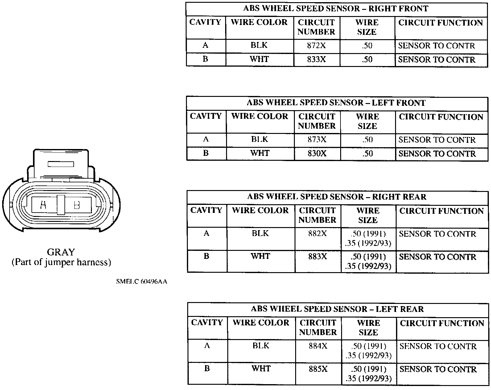 ABS Wheel Speed Sensors Connector Face: