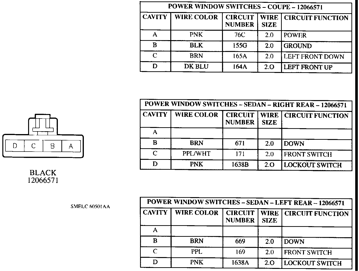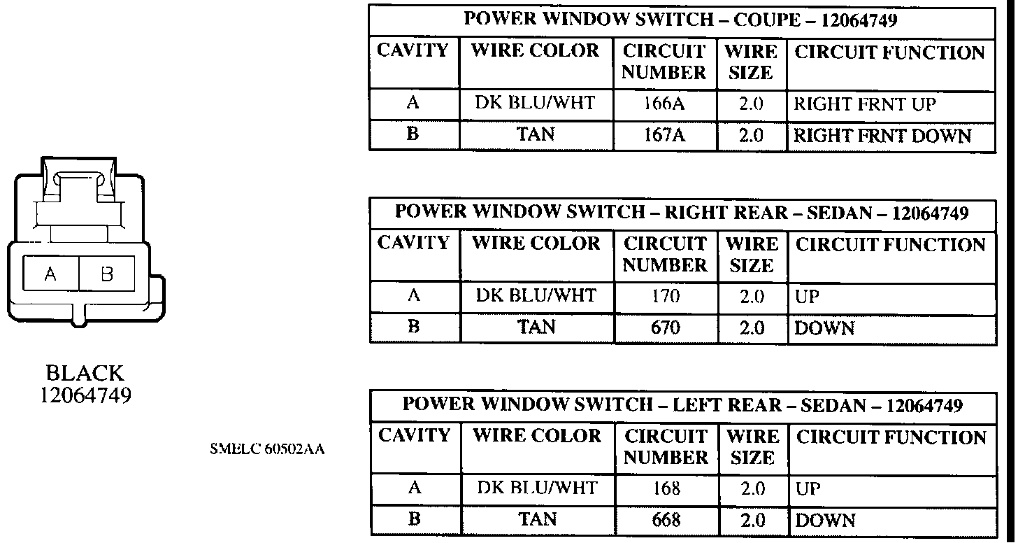 Power Window Switches Connectors: