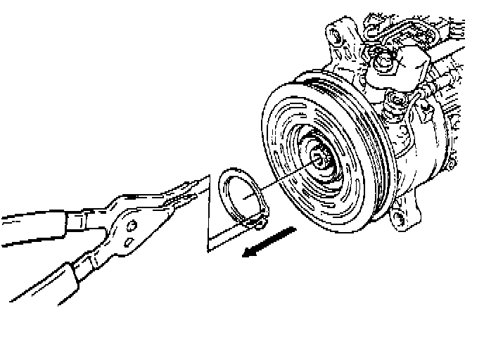 IMPORTANT: Be careful not to lose the shims when removing drive plate from compressor shaft.