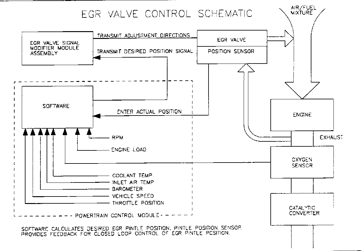 Output messages are then sent to the EGR system indicating the proper amount of exhaust gas recirculation necessary to lower combustion temperatures. This electronic metering of exhaust gas is ten times faster than a vacuum operated system and has improved diagnostic capabilities.