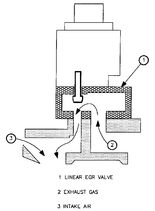 The exhaust gas then flows from the cylinder head exhaust port (through the orifice) to the intake manifold. The height of the pintle is read by the pintle position sensor, and the control module closes the loop as desired position versus actual position read, changing the pulse width modulated command to the solenoid accordingly, until the actual pintle position equals the desired pintle position.