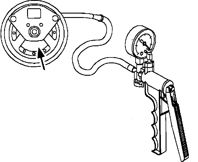 ^ With the ignition "OFF", connect a hand held vacuum pump to the EGR valve vacuum line at the EGR solenoid.