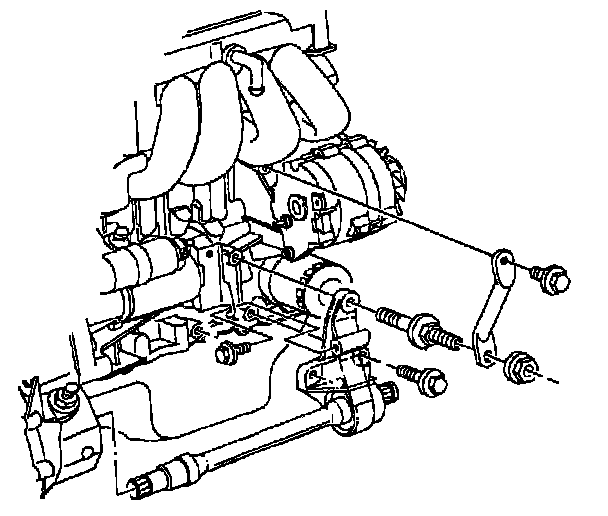 24. On 1992,1993, and 1994 vehicles, install the transaxle strut, transaxle bracket-to-transaxle bolts, if removed.