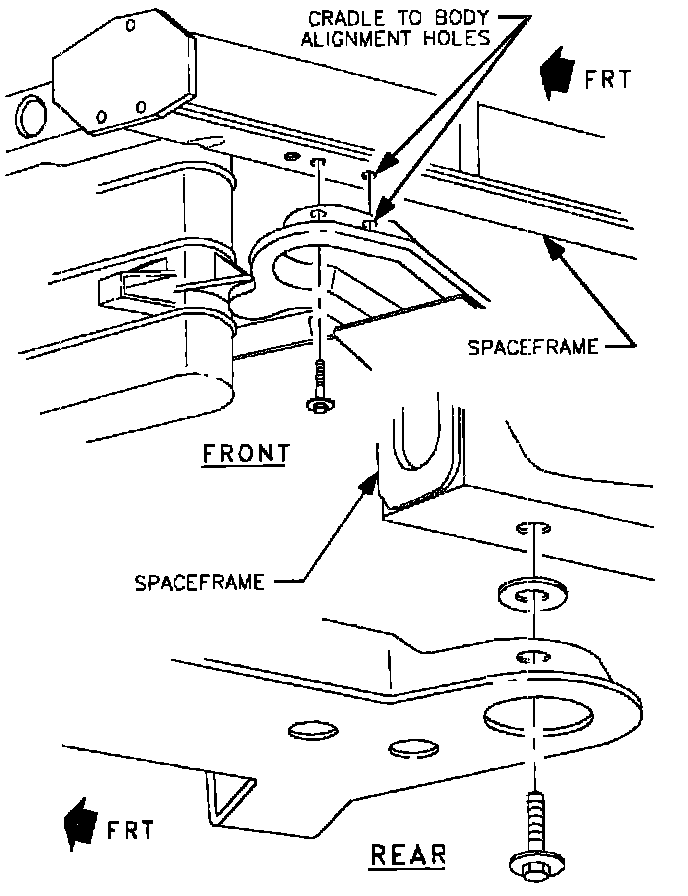 18. Install two rear cradle-to-body fasteners.