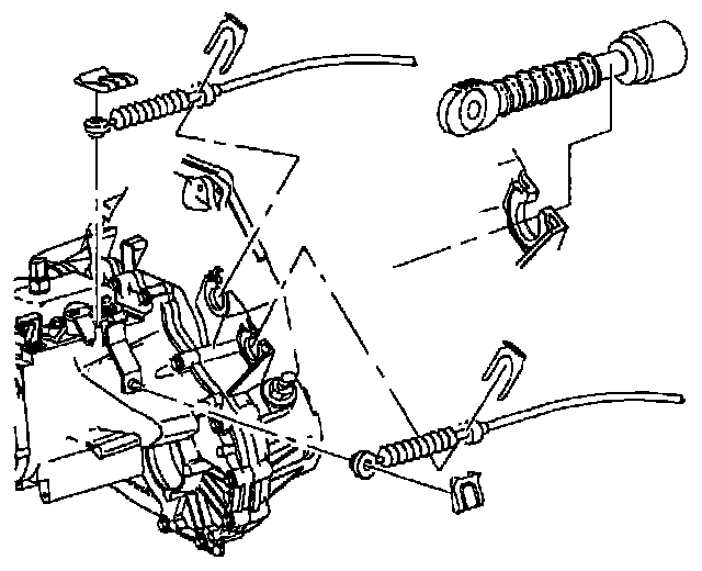 34. Connect shifter cables to shift arms and clutch housing. Install cable retainers.