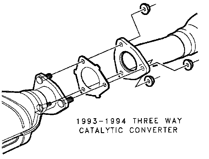 62. On 1993 and 1994 vehicles, install the intermediate exhaust pipe-to-three way catalytic converter flange fasteners.