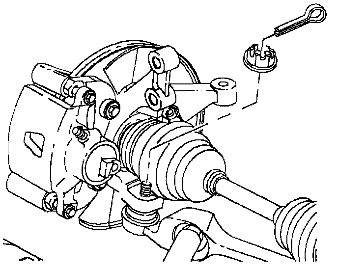 a. After torquing, if necessary, tighten nut additionally to align slot in the nut with the cotter pin hole in the ball joint. Install the cotter pin.