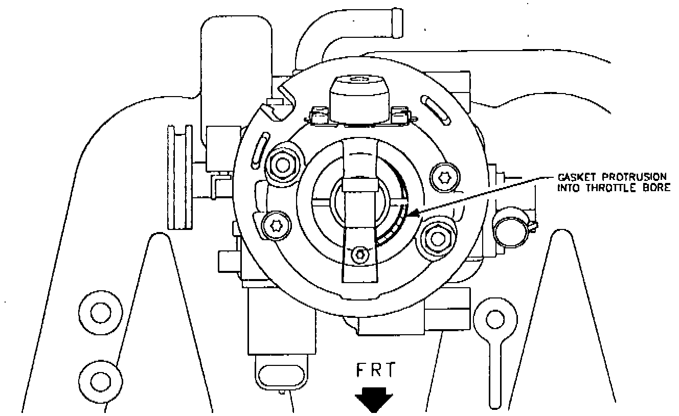 The gasket between the TBI unit (all 1991 and 1992 engines built before and including VIN NZ151498) and intake manifold can protrude into the throttle body bore causing fuel to puddle on it.