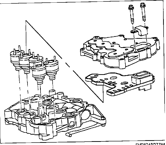 IMPORTANT: The valve body does not have to be removed from the transaxle to gain access to the actuators.