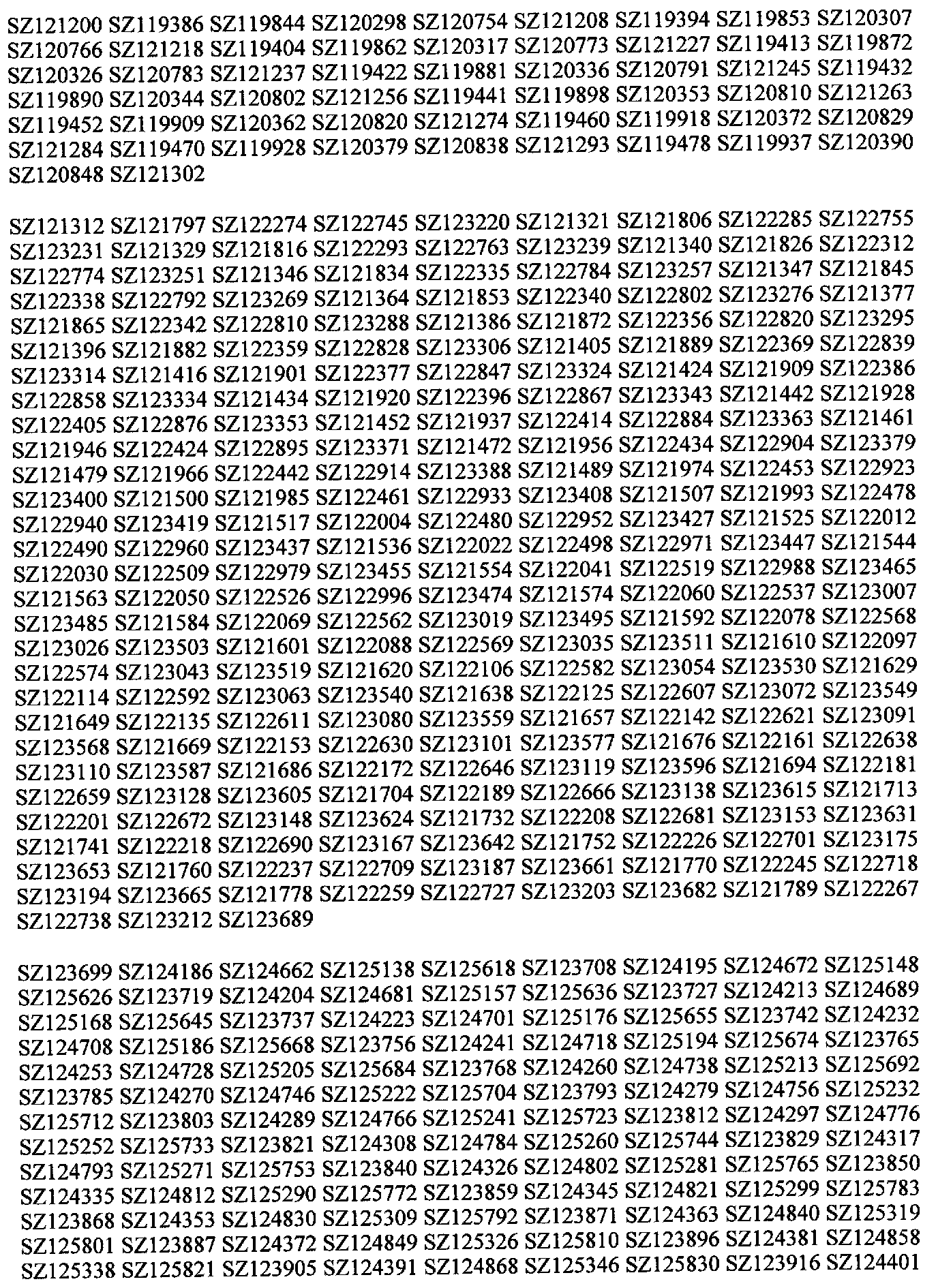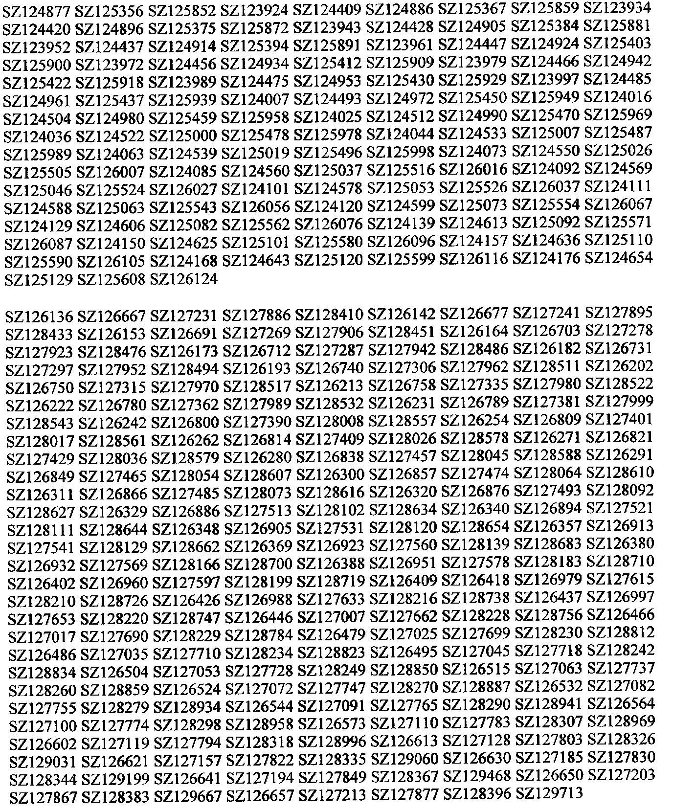 SZ119029 through SZ129713.
