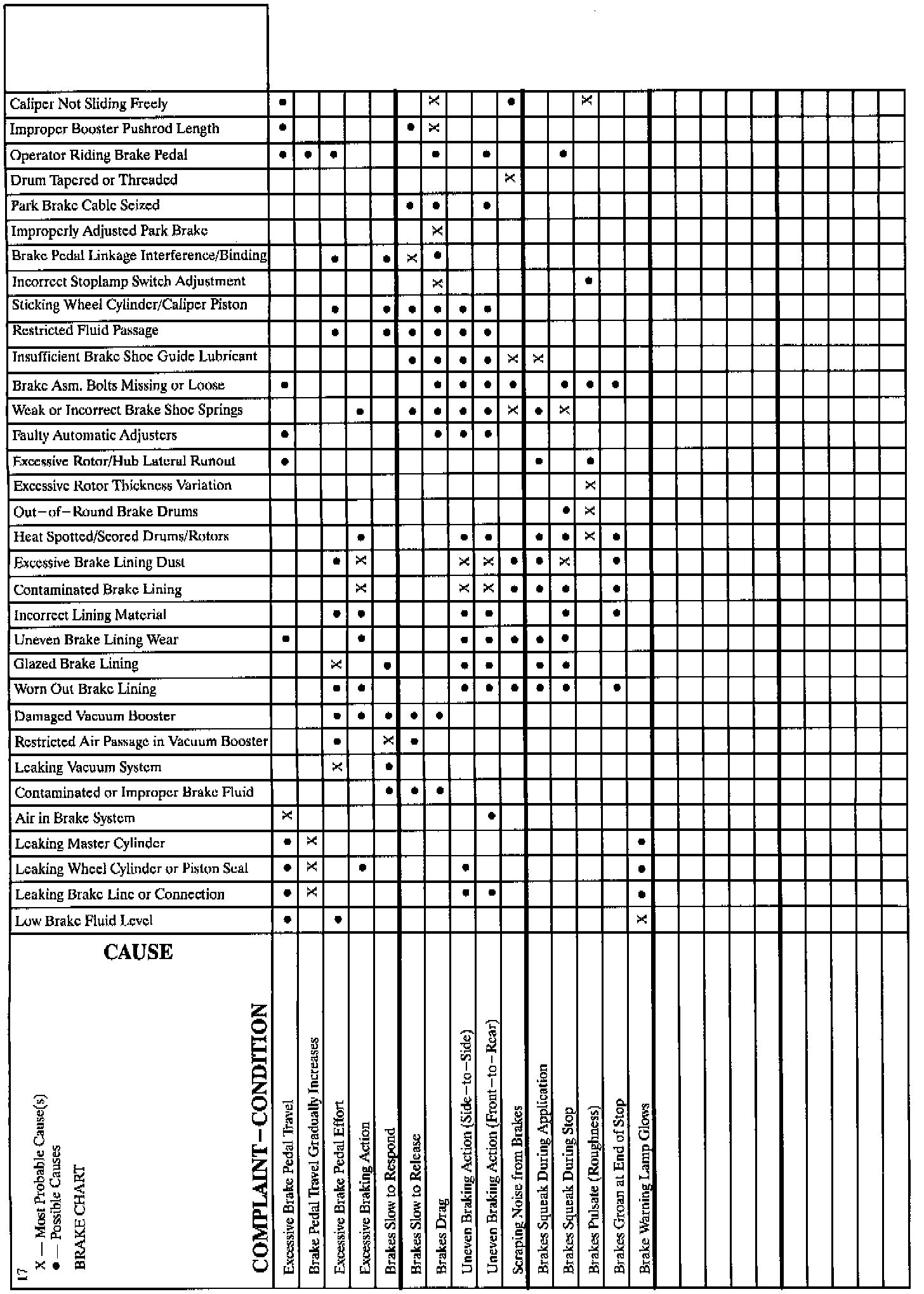 Complaint / Conditions Chart: