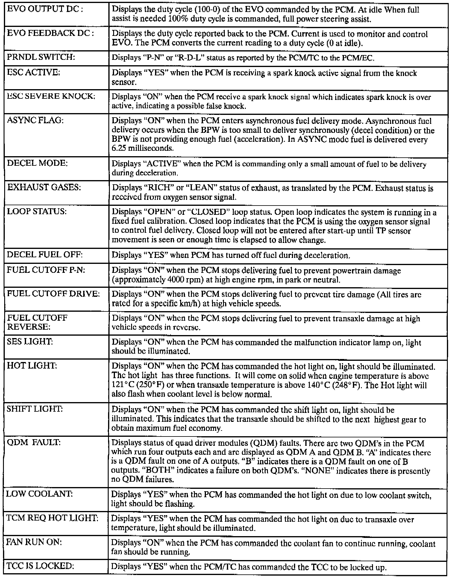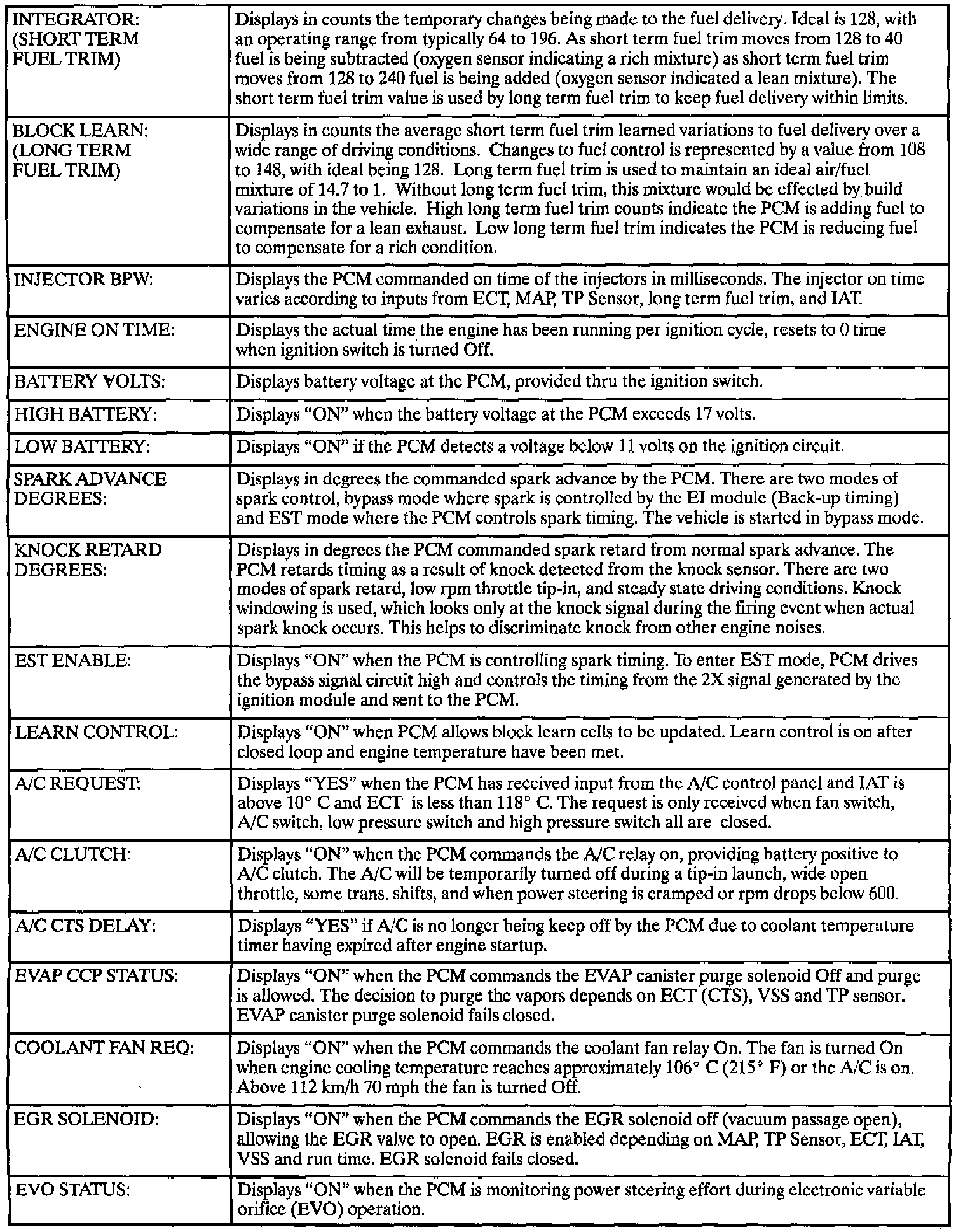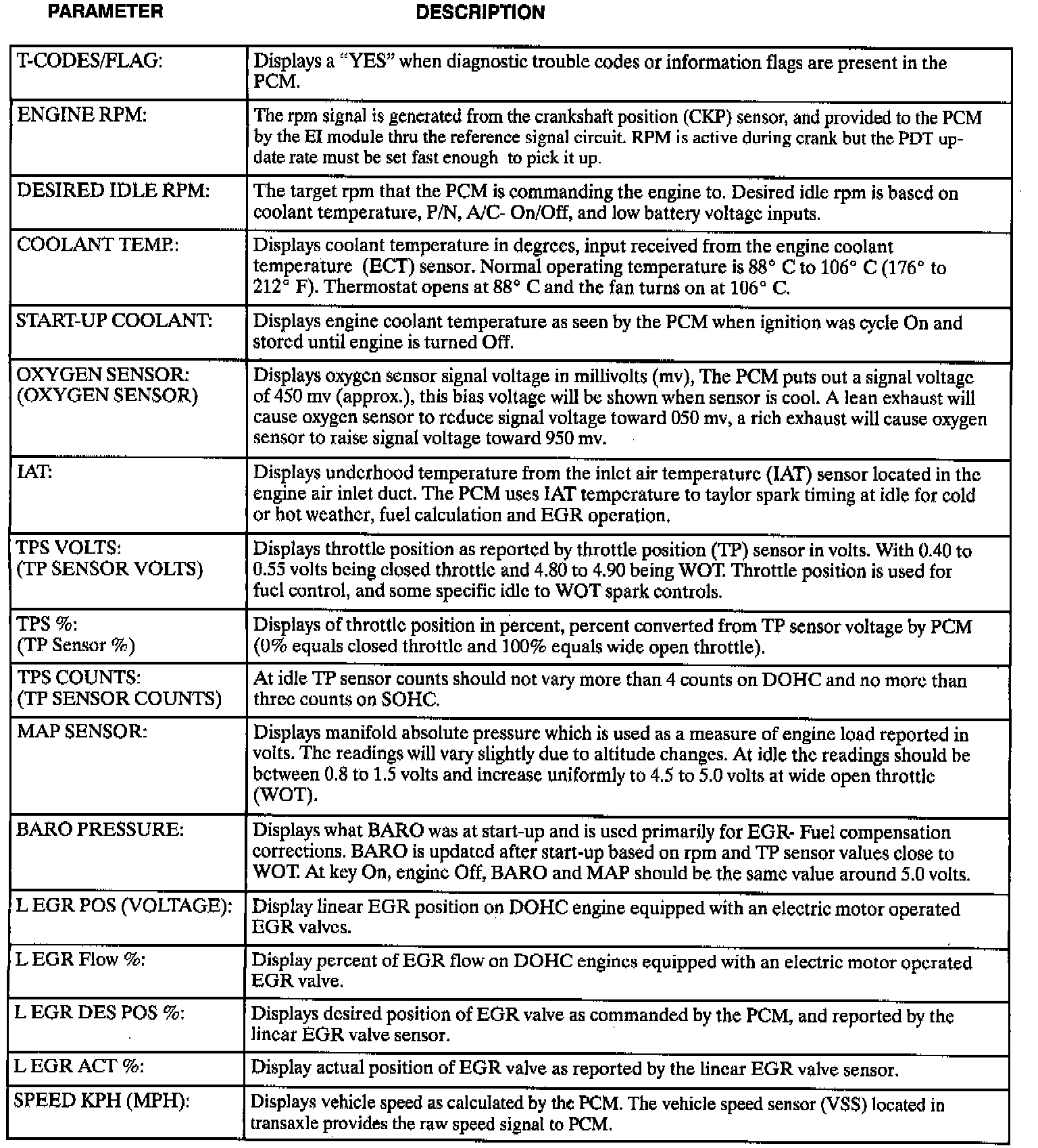 Saturn Scan Tool (PDT) Parameter Info - Engine Control (EC)