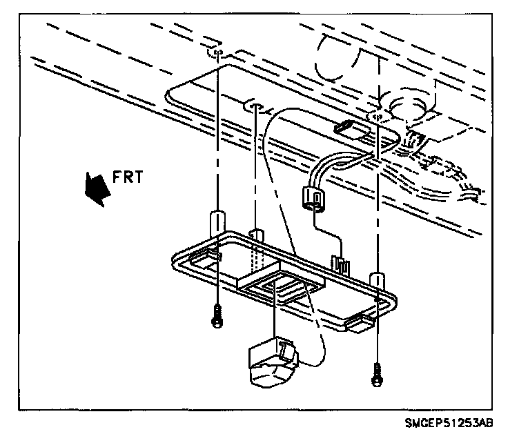 2. Remove map lamp base assembly from roof console assembly and disconnect wire connector to sunroof switch.