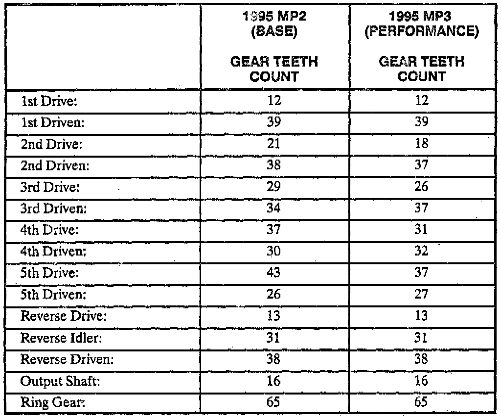 All MP3 unique gears have an identification groove on the outer diameter of the gear teeth. There is no identification mark on MP2 unique gears, or MP2 and MP3 common gears.