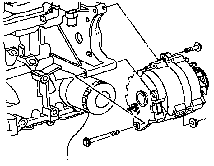 1. Position generator on lower cylinder block bracket and install the lower attachment bolt. Install upper attachment bolt and torque both bolts.