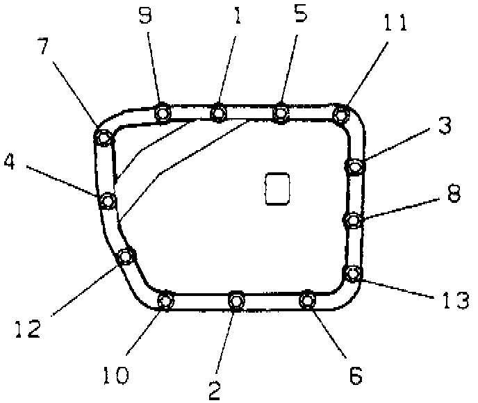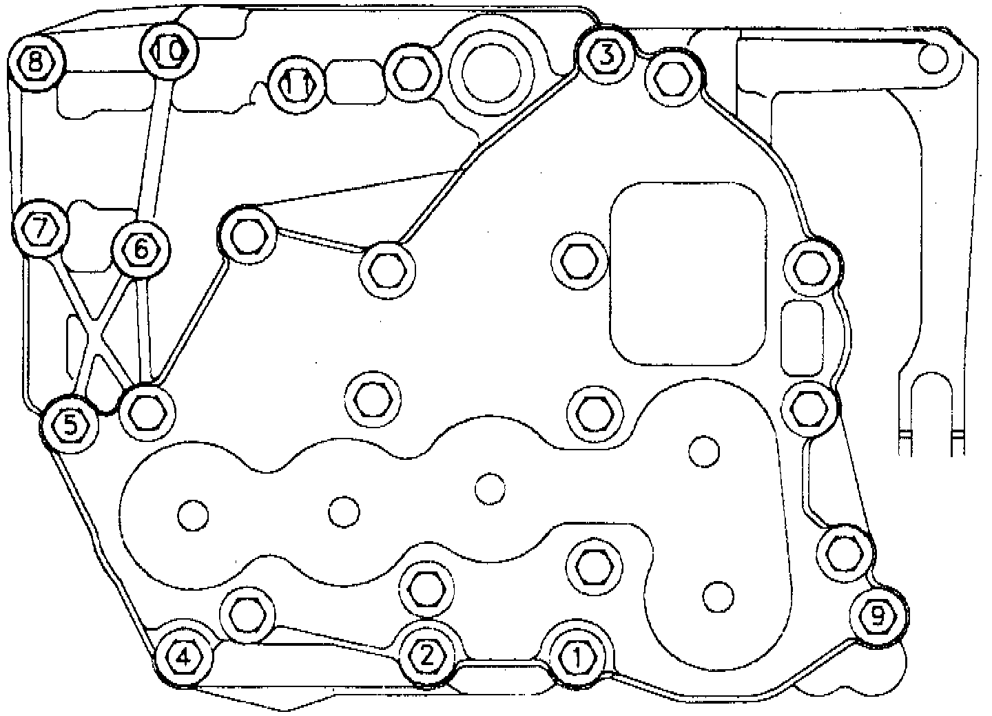 50. Clean and lubricate valve body cover bolts using Dexron II, or equivalent, then install valve body cover bolts and tighten to specifications in sequence shown.