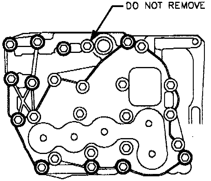 7. Remove eleven valve body to case bolts as shown.