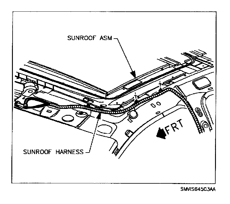 3. Disconnect sunroof wiring along right side of sunroof module to center pillar location.