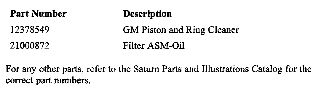 While Saturn still considers oil consumption of 1 quart (0.951 liter) in 2000 mi. (3218 km) to be an acceptable level, the engine cleaning procedure contained in this bulletin may improve oil consumption performance to an even more acceptable level.