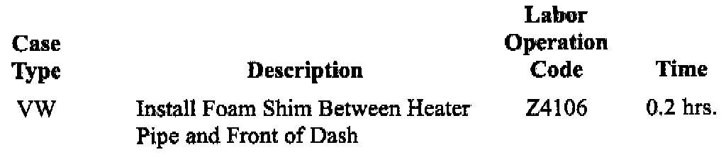 Install a foam shim between the heater return pipe and the front of the dash using the procedure in this bulletin.
