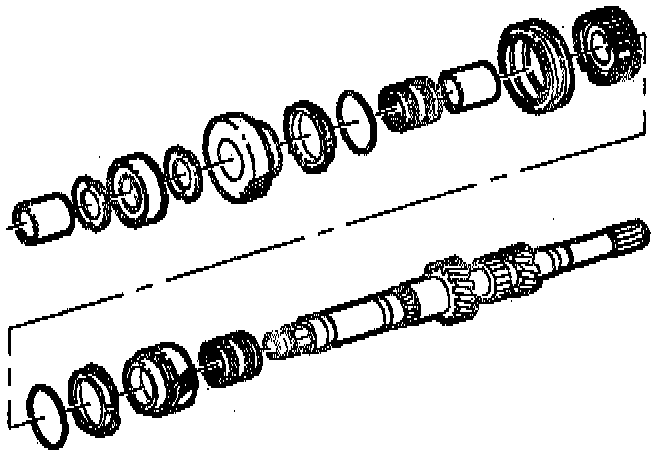 14. Install 5th gear bearing inner-race and thrust washer. Warm bearing race with your hands or heat gun before installing.