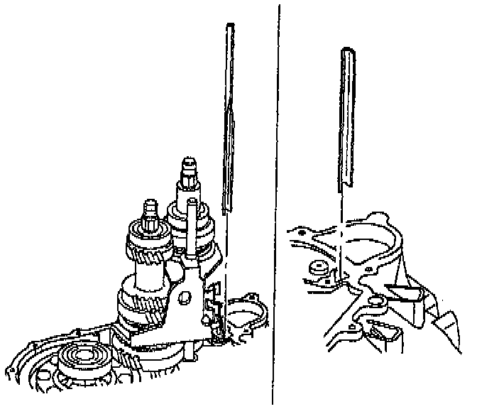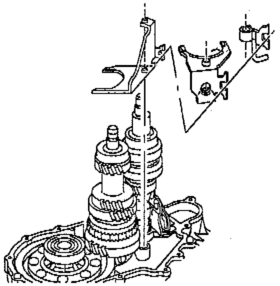 5. Move two shift forks to lock the transaxle in two gears.