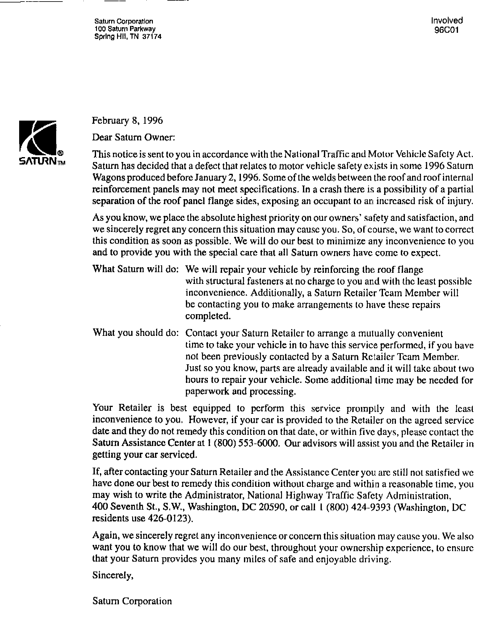 Involved In Defect Letter