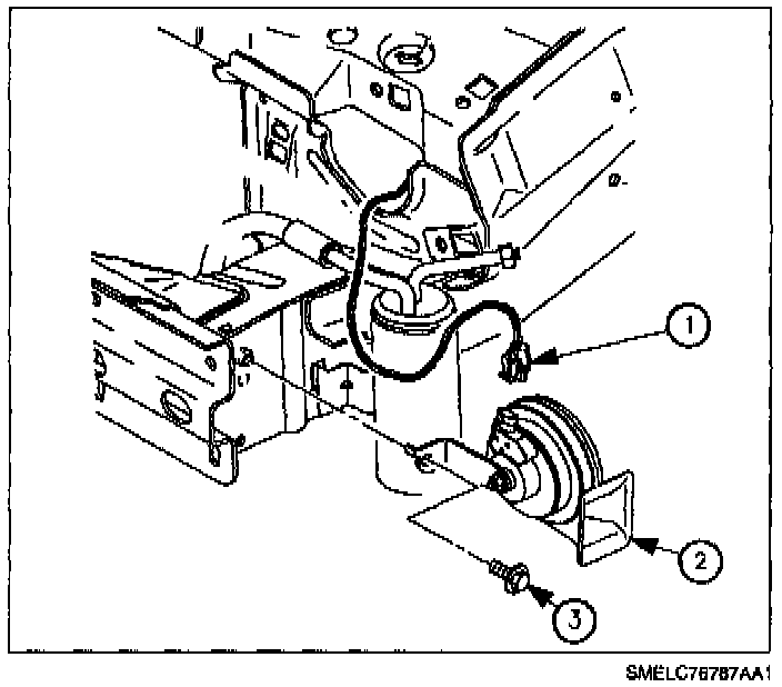 5. Position replacement horn to space frame and install attaching bolt.