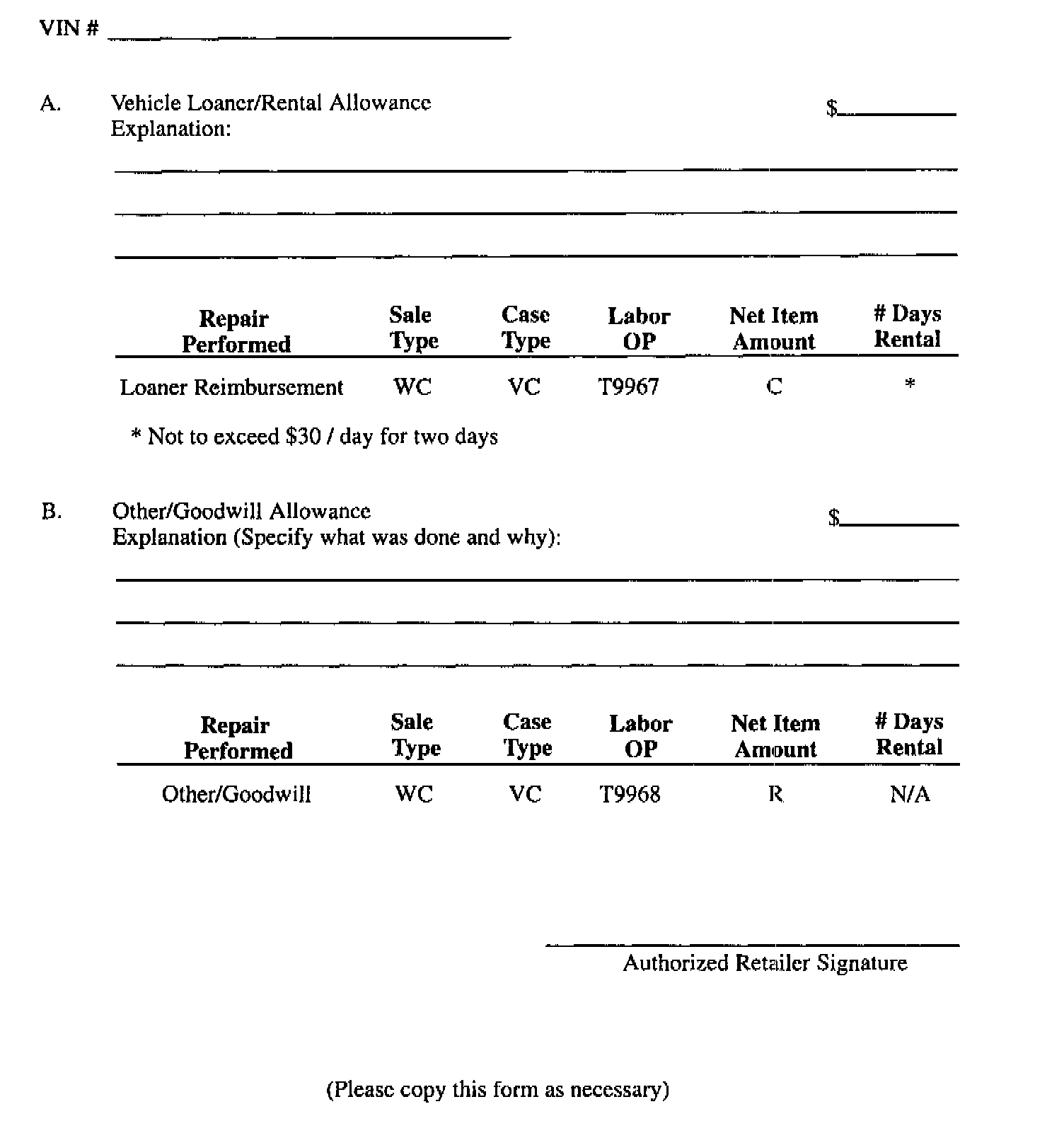 As stated in the "Credit" section of this bulletin, Retailers are empowered to use good judgement regarding loaner/rental cars or other goodwill expenses that might become necessary for customer satisfaction.