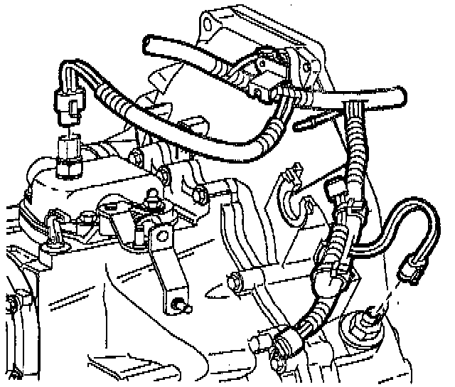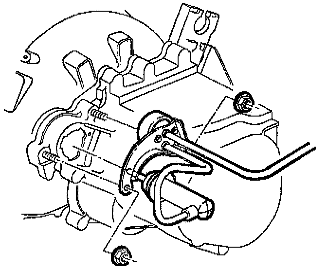 32. Unwire clutch hydraulic system from upper radiator hose. Install two clutch hydraulic system to clutch housing nuts.