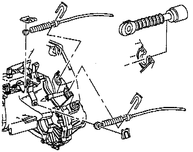 31. Connect shifter cables to shift arms and clutch housing. Install cable retainers.