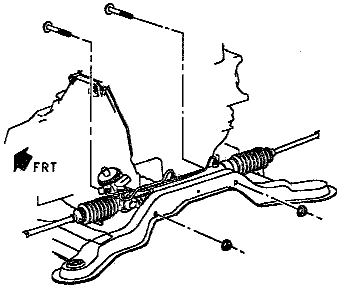48. Install steering gear-to-cradle attachment fasteners. (Power steering gear shown, manual similar.)