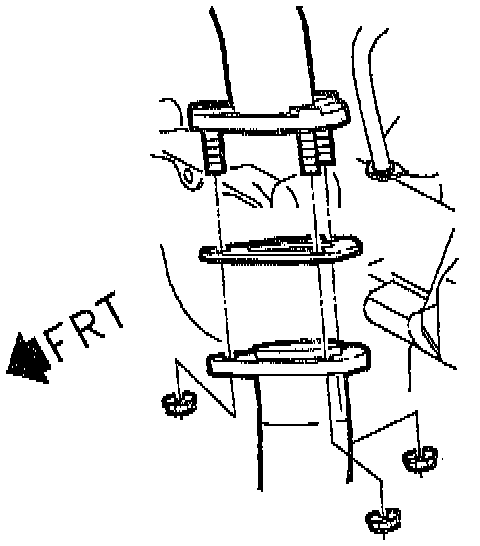 58. On Coupes, install right and left lower fascia brace to cradle J-nuts.