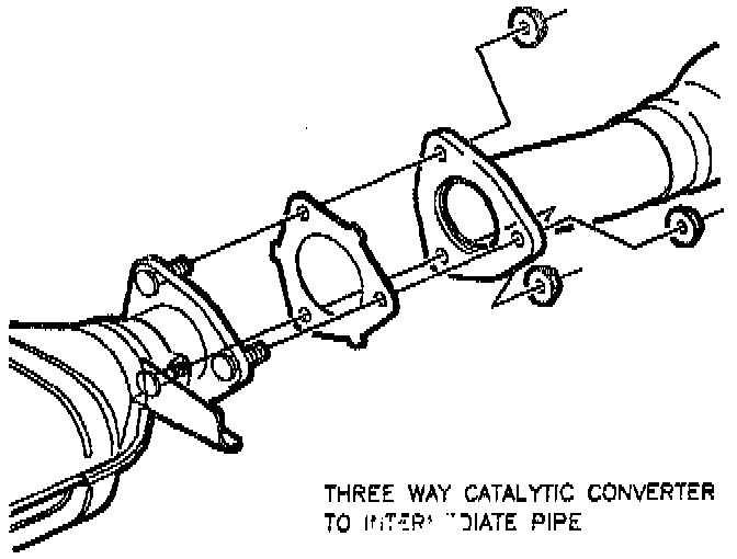 54. Install the intermediate exhaust pipe-to-three way catalytic converter flange fasteners.