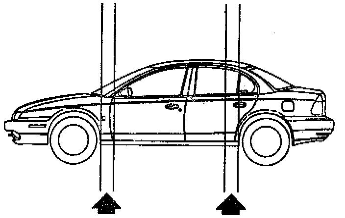 CAUTION: MAKE SURE VEHICLE IS PROPERLY SUPPORTED AND SQUARELY POSITIONED ON HOIST. TO HELP AVOID PERSONAL INJURY WHEN A VEHICLE IS ON A HOIST, PROVIDE ADDITIONAL SUPPORT FOR THE VEHICLE ON THE OPPOSITE END FROM WHICH COMPONENTS ARE BEING REMOVED.