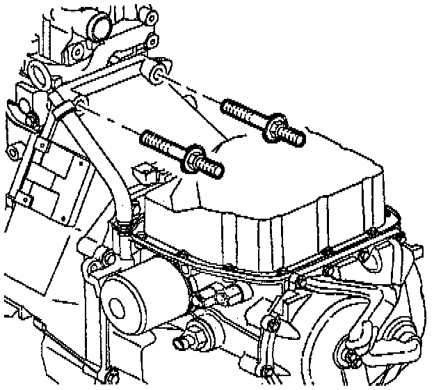 51. Remove two bottom clutch housing to engine bolts, and install guide bolt into bottom rear clutch housing bolt hole.