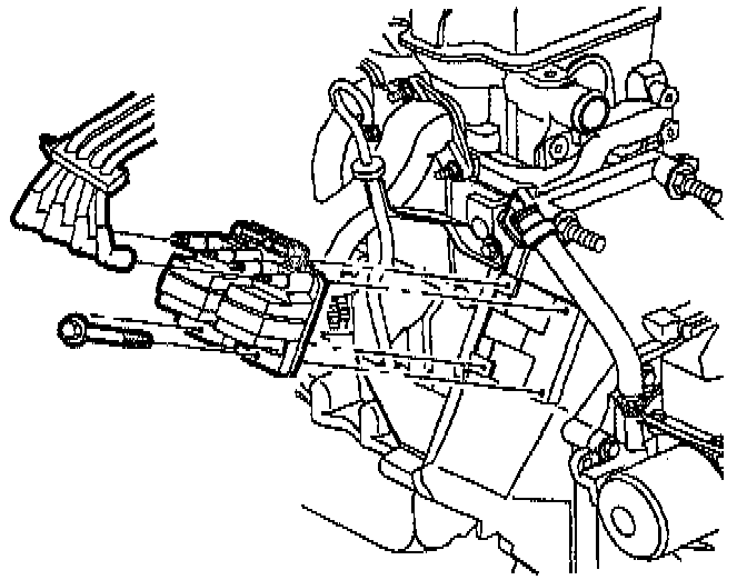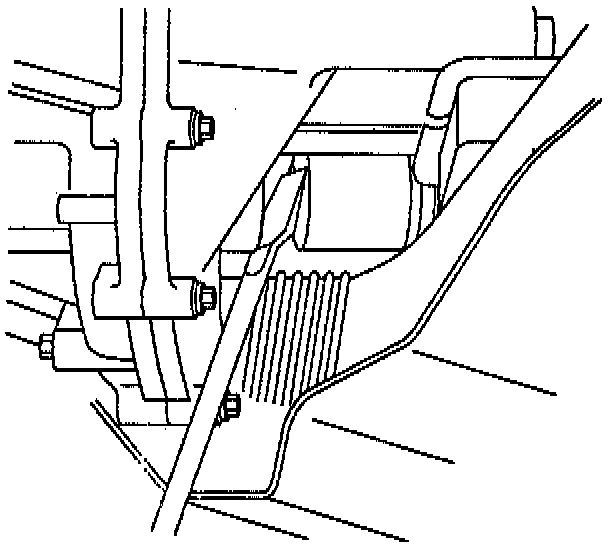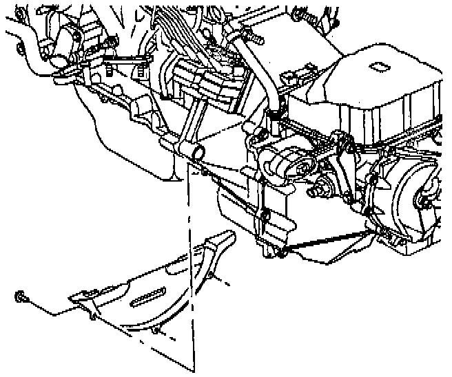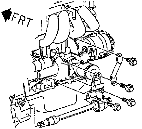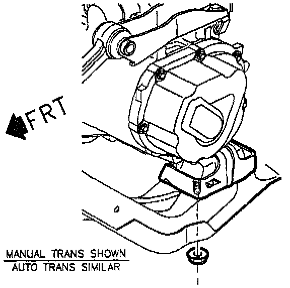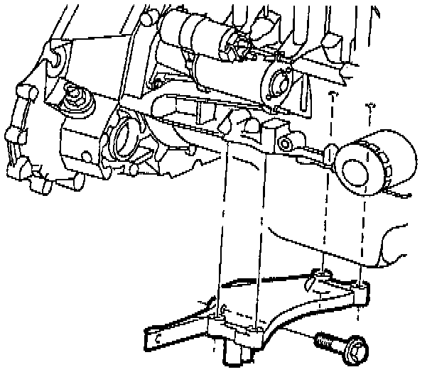 8. Remove transaxle strut-to-midrail bracket fastener.