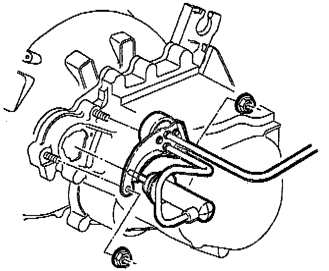 18. Remove two clutch hydraulic dampener to clutch housing fasteners. Wire the actuator cylinder and the dampener to the upper radiator hose.