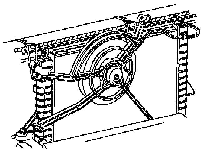19. Wire the radiator to the upper radiator support to hold the radiator in place when cradle is removed.