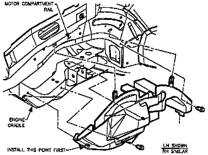 24. For coupes, remove left and right lower fascia to cradle brace.