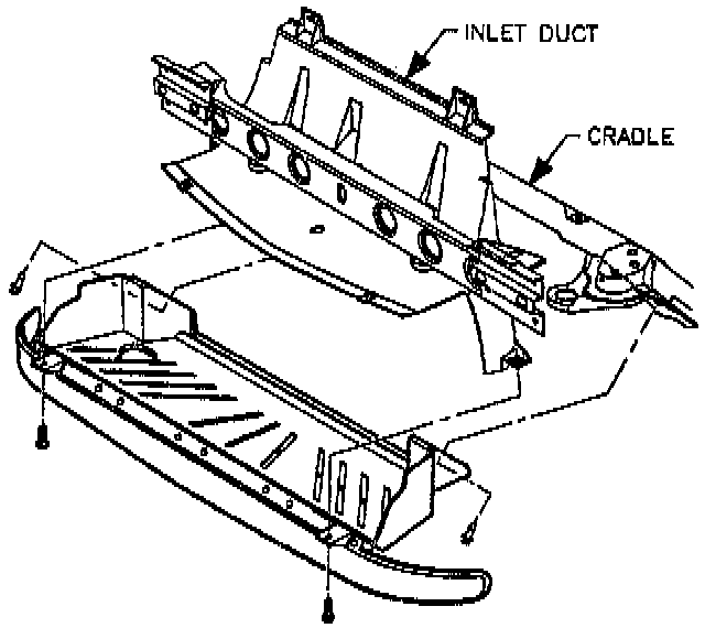 26. Remove engine strut cradle bracket-to-cradle fasteners.