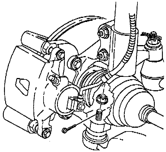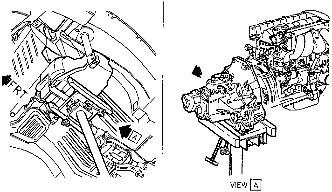 CAUTION: MAKE SURE VEHICLE IS PROPERLY SUPPORTED AND SQUARELY POSITIONED ON HOIST. TO HELP AVOID PERSONAL INJURY WHEN A VEHICLE IS ON A HOIST, PROVIDE ADDITIONAL SUPPORT FOR THE VEHICLE ON THE OPPOSITE END FROM WHICH] COMPONENTS ARE BEING REMOVED.