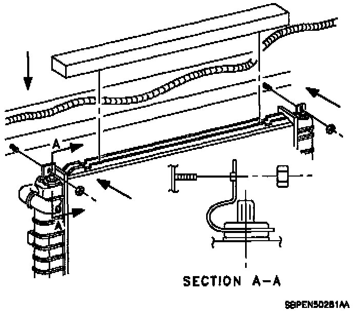 6. On models with automatic transaxle install lower transaxle oil cooler line. Torque to 30 Nm (22 ft. lbs.).