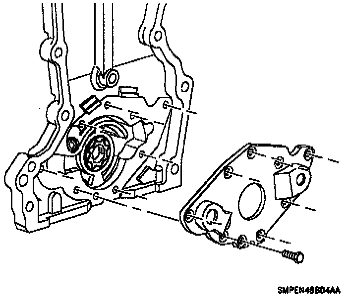 CAUTION: The oil pump cover screws are coated with a sealant to prevent oil leakage. New screws must be installed if they are removed.