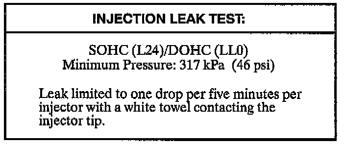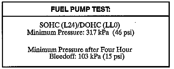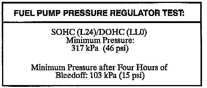 If pressure bleeds off beyond specification, replace the fuel pump, if pressure remains within specification, go to the next step.