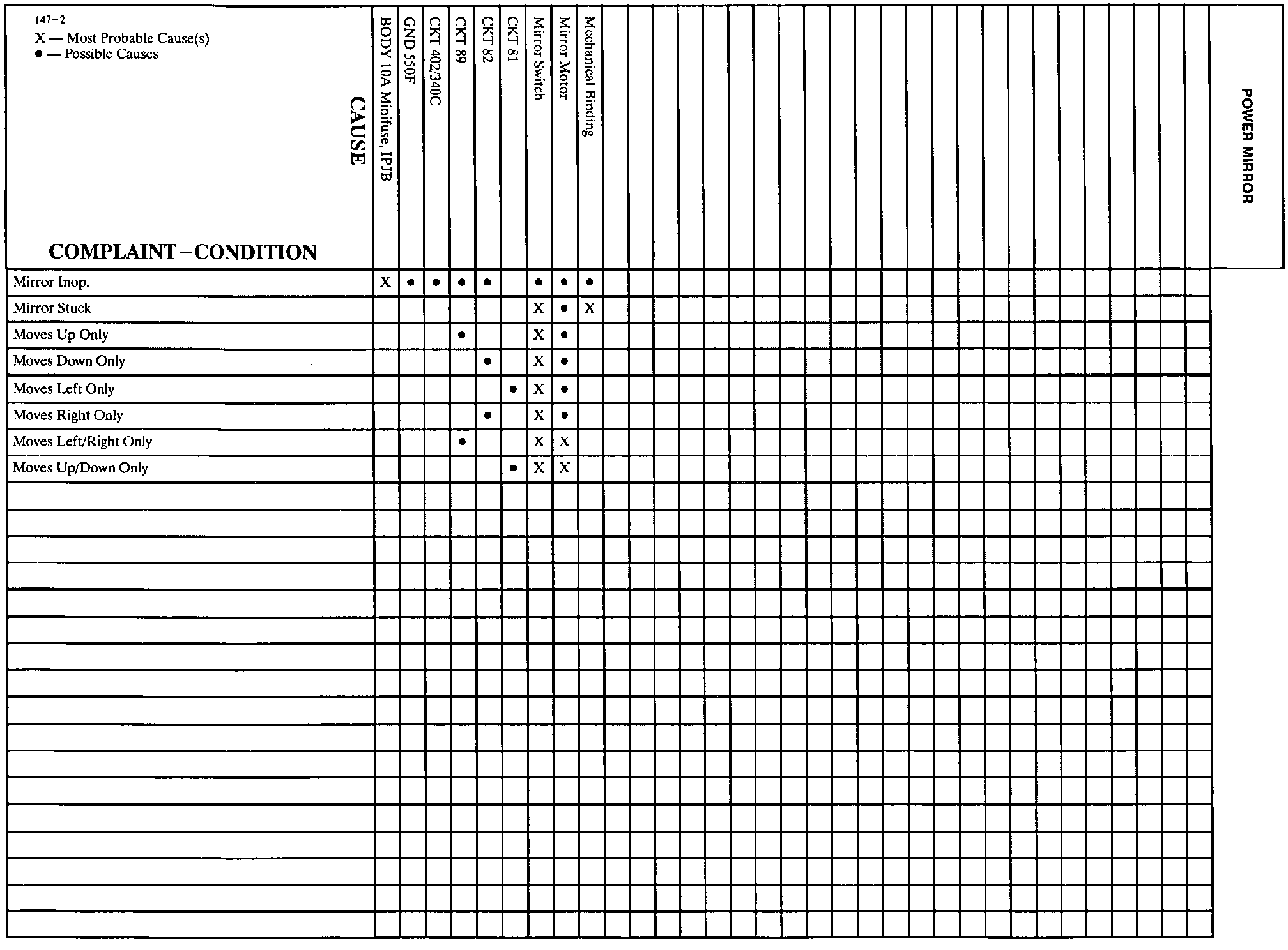 Power Mirror Complaint-Condition Chart: