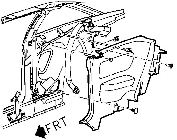 7. Position rear edge of rear seat cushion onto rear compartment ramp. Route seat belt buckles through rear seat cushion opening. Make sure that the seat belts are not twisted or that the buckles are not stuck beneath the rear seat cushion.