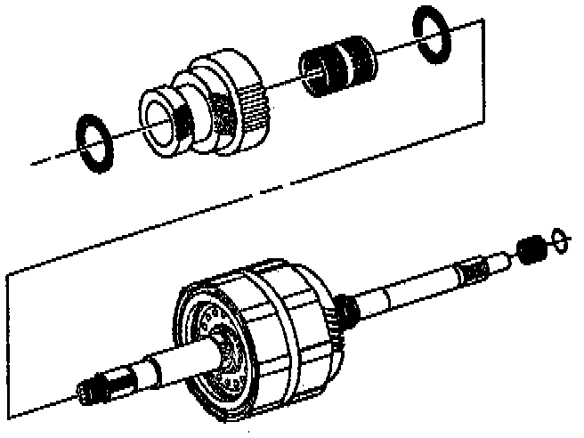 1. Remove input shaft to converter O-ring and remove input shaft to stator shaft bearing.