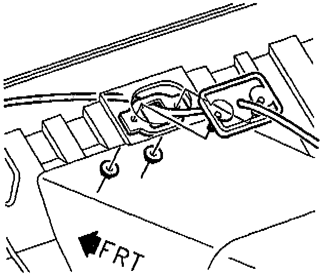 2. Insert the cable pass-through grommet into the cable pass-through hole in the floor pan, engaging the passenger side of the grommet first. Snap the driver's side of the grommet into place by pressing inward and toward the passenger side of the vehicle.