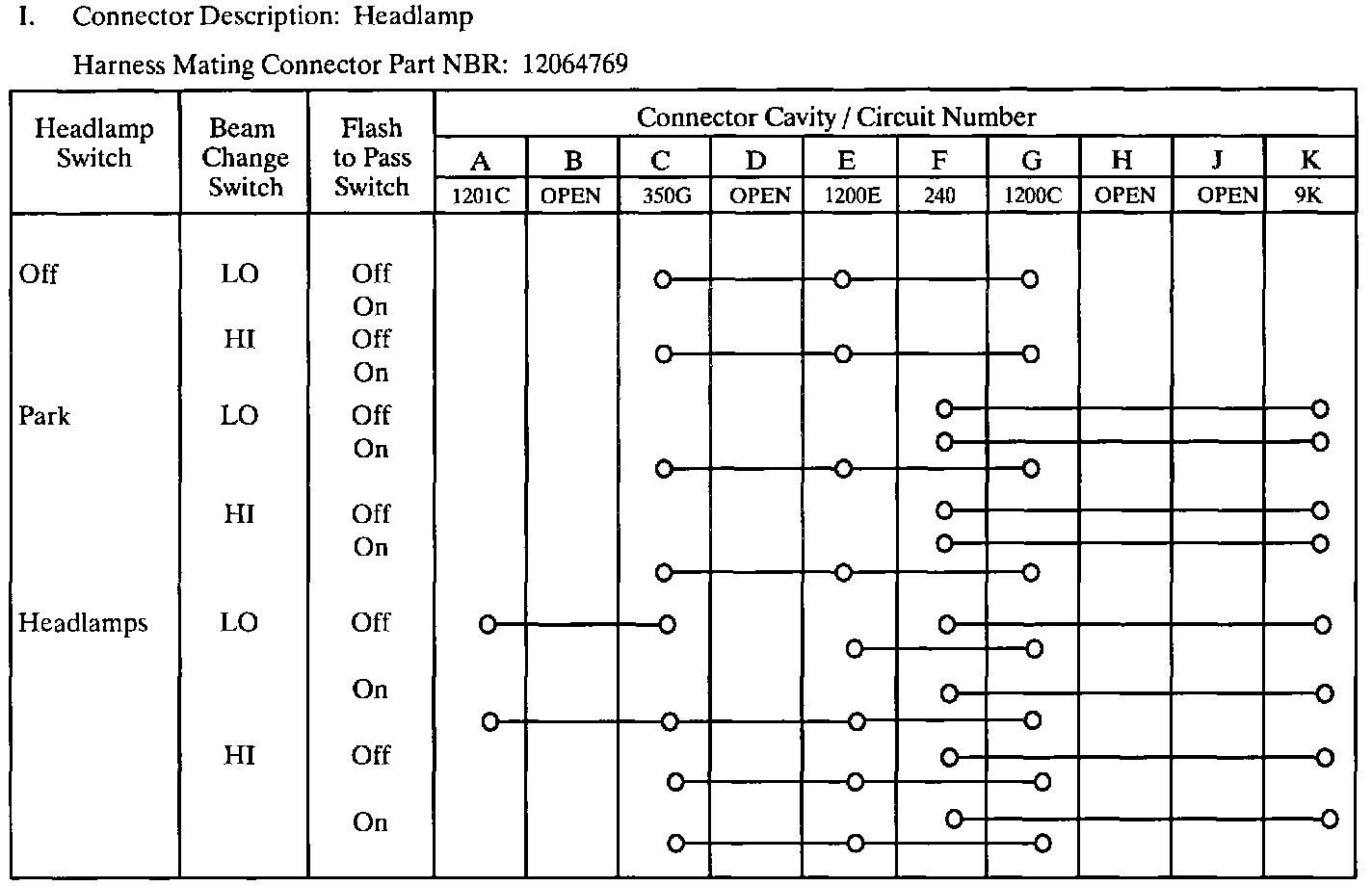 Multifunction Switch Logic: Headlamp Connector Description: